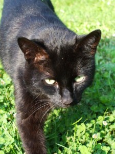 Einen lieben Kater. Schwarz wie die Nacht, grüne Augen, ein herrischer Blick, abfällig nach unten zeigendes Maul … Nicht zu vergessen der steil nach oben stehende Schwanz, das alleroberste Zipfelchen wie eine gnädig winkende Königin bei jedem Schritt wippend.
